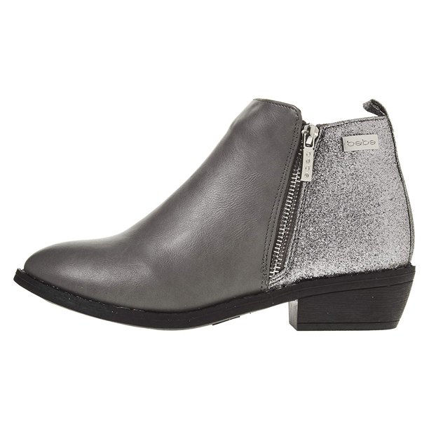 Bebe Girls Ankle Boots Size 3 Round Toe Designed Glitter Panels Side Zippers Casual Dress Slip On Walking Low Mid High Fashion Shoes Grey Walmart Com